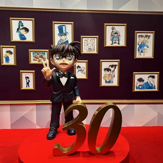 “从小学开始,我看了20年《名侦探柯南》了。”在展览现场,90后粉丝赵先生告诉记者,小时候他还会画漫画中的人物,这部作品陪伴他度过了许多美好时光,“一听说有30周年纪念展我就立刻买好了票。”
