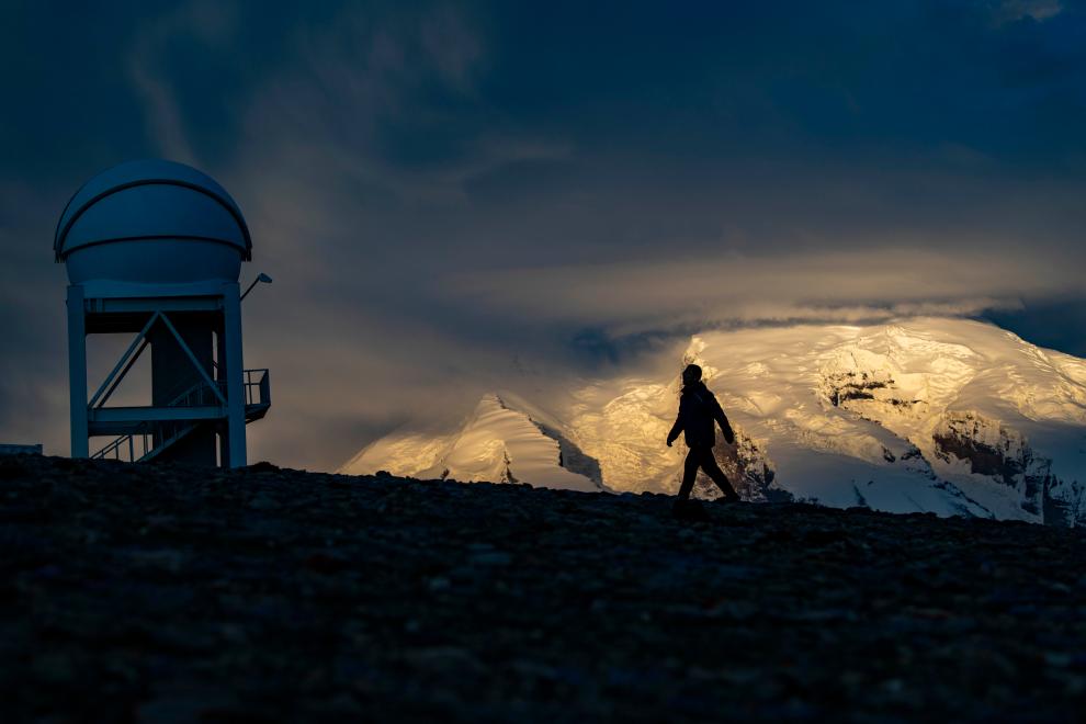 天文科技工作者冯国杰在中国科学院新疆天文台慕士塔格观测站内巡查(2020年6月15日摄)。