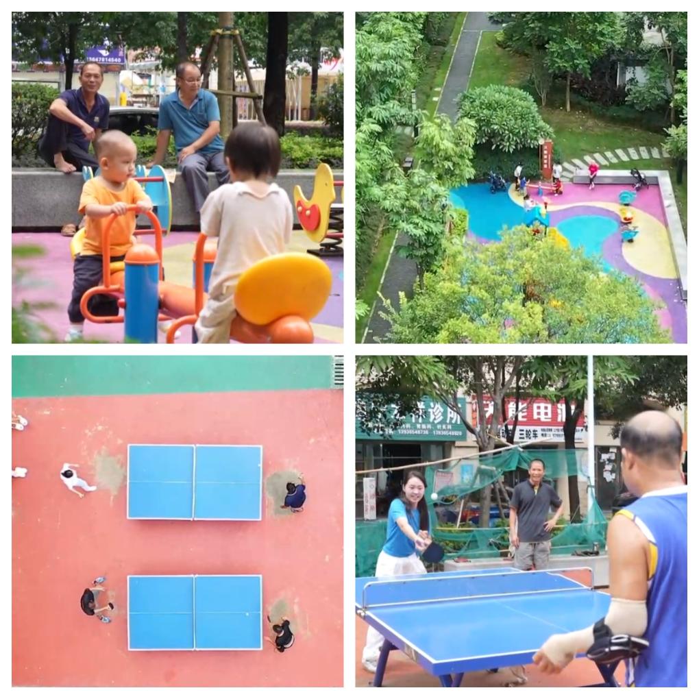 早上9点多,在位于广西南宁的仁和口袋公园,已经有很多的市民来到这里打乒乓球、健身、遛娃。