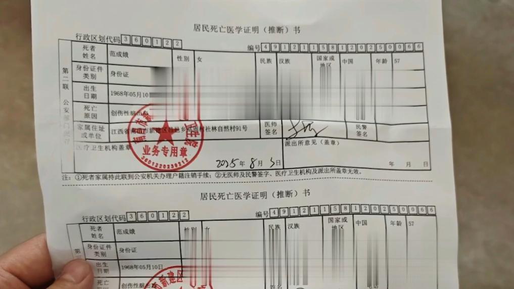 8月2日晚,江西南昌市的一家医院内,连续工作两天两夜后,护工范成娥在照顾病人期间,昏倒在卫生间,2个多小时后被发现,经抢救无效死亡。