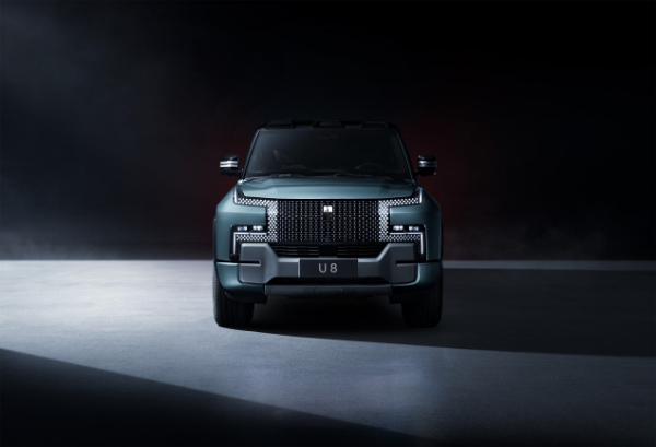 仰望U8的外观,融合了时空之门设计语言,前卫霸气,气场全开。庞大方正的车身,搭配星际穿越大灯,具有较强的辨识度。此外,车顶探测系统、D 柱能量塔等细节设计,提升了人与车的智能交互体验。