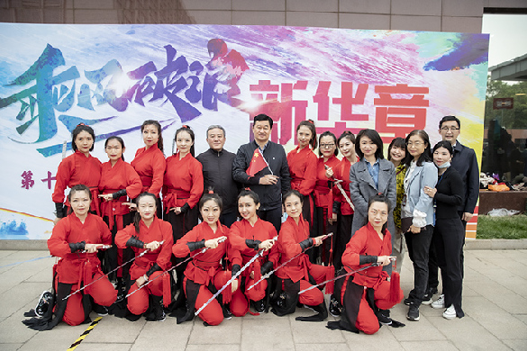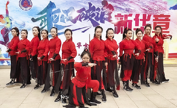 圖為新華網(wǎng)員工現(xiàn)場表演劍舞《出征》陳杰?攝