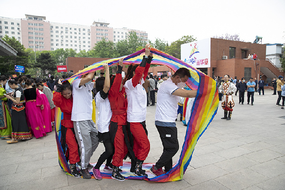 圖為新華網(wǎng)員工參加團體趣味健身運動?陳杰?攝