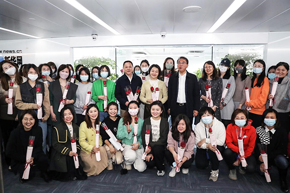 3月8日,姍娜、錢彤同志等公司領(lǐng)導(dǎo),及工會(huì)、婦委會(huì)向公司女員工送上鮮花等慰問品,向大家致以節(jié)日問候。?