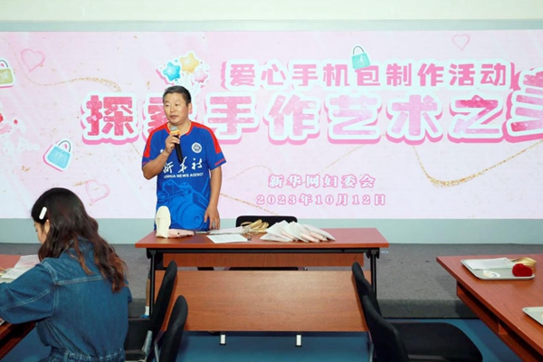 10月12日,新華網婦委會舉辦“探索手作藝術之美——愛心手機包制作”活動。參與員工在領略中國傳統手工制作的藝術之美同時,也緩解工作和精神壓力。手作藝術是中國文化的重要組成部分,所制作的工藝品不僅具有欣賞價值,也成為女職工們的實用貼心物品。