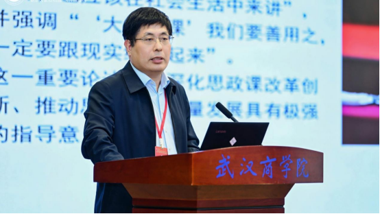 山东第二医科大学马克思主义学院院长李笃武作主旨报告。图片来源:武汉商学院