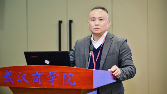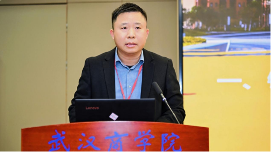 开封职业学院副校长马纪岗作主旨报告。图片来源:武汉商学院