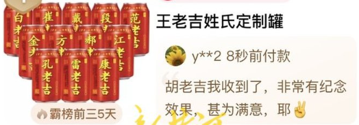 案例:王老吉姓氏定制罐引发网友分享