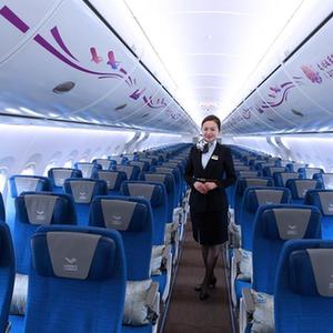這是12月13日拍攝的C919飛機經濟艙。新華社記者 陳鐸 攝