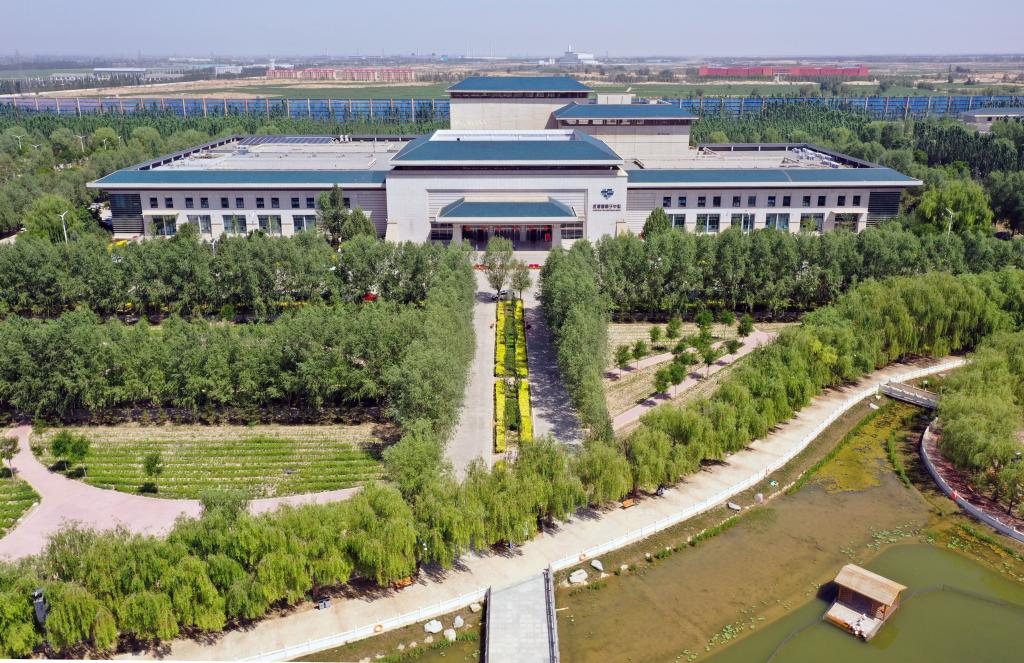 這是綠樹環繞下的甘肅省武威重離子中心(2023年6月16日攝,無人機照片)。新華社記者 郭剛 攝