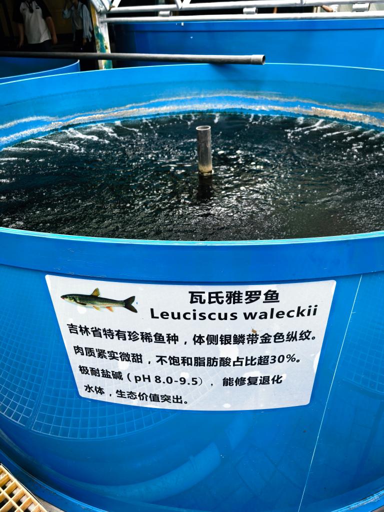 另一侧的智能温室里,一个个圆形蓄水池组成水产养殖区。这里有柳根鱼、瓦氏雅罗鱼、西伯利亚鲟、黄金鲫、小龙虾、青虾、南美对虾……来自多地的水产品分别“居住”在不同池内。