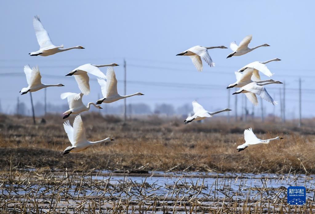 近期,隨著氣溫回暖,大批候鳥飛抵內蒙古呼和浩特市的土默川平原棲息覓食,成為當地一道靚麗的風景。