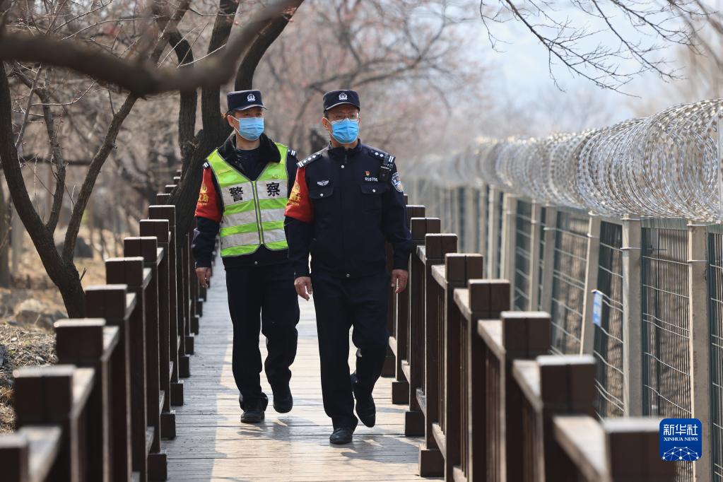 4月4日,北京鐵路公安處南口站派出所的民警在居庸關長城附近線路進行安全隱患排查工作。