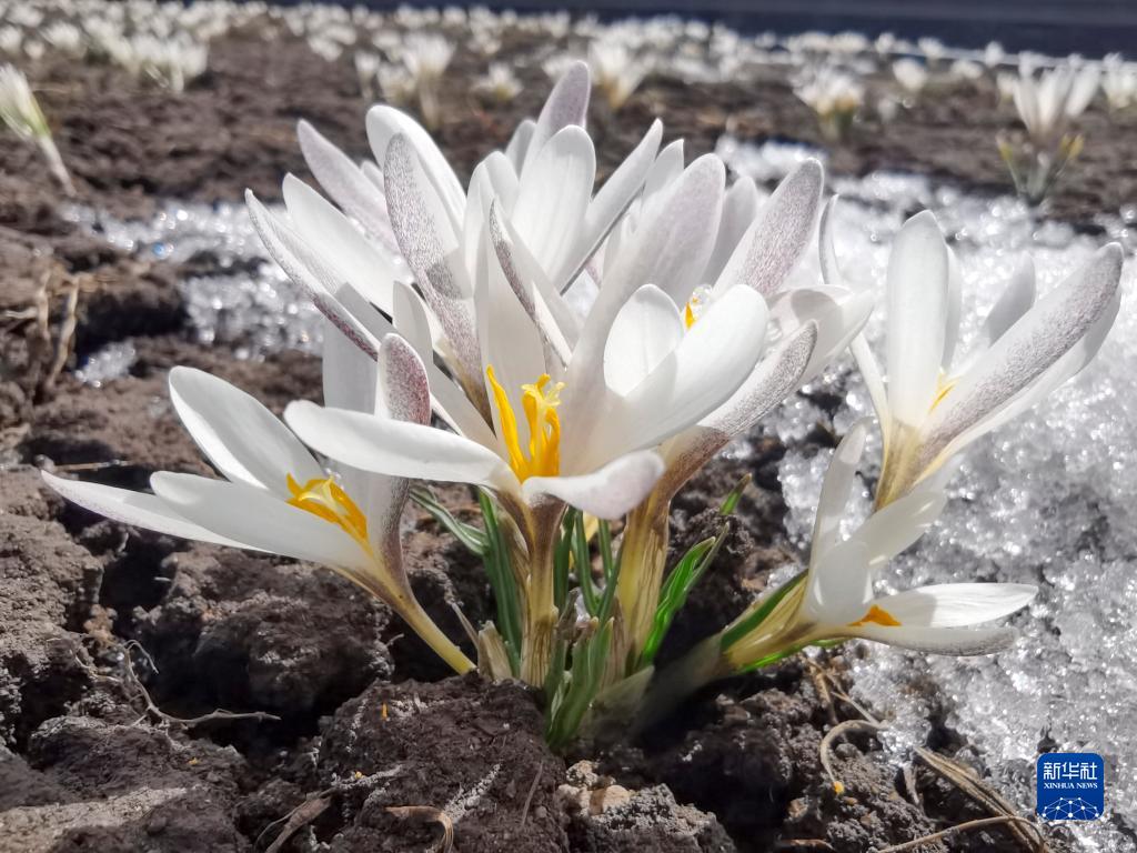 進入4月,位于新疆伊犁河谷上的昭蘇草原積雪逐漸開始消融,頂冰花在涓涓雪水的滋養下悄然綻放。