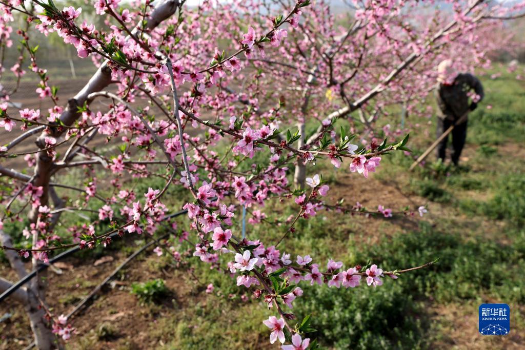 4月10日,山東省棗莊市齊村鎮(zhèn)前良村農(nóng)民在桃園里勞作。