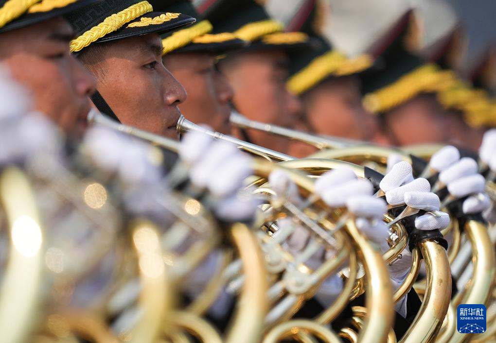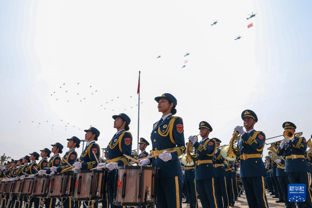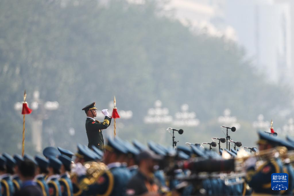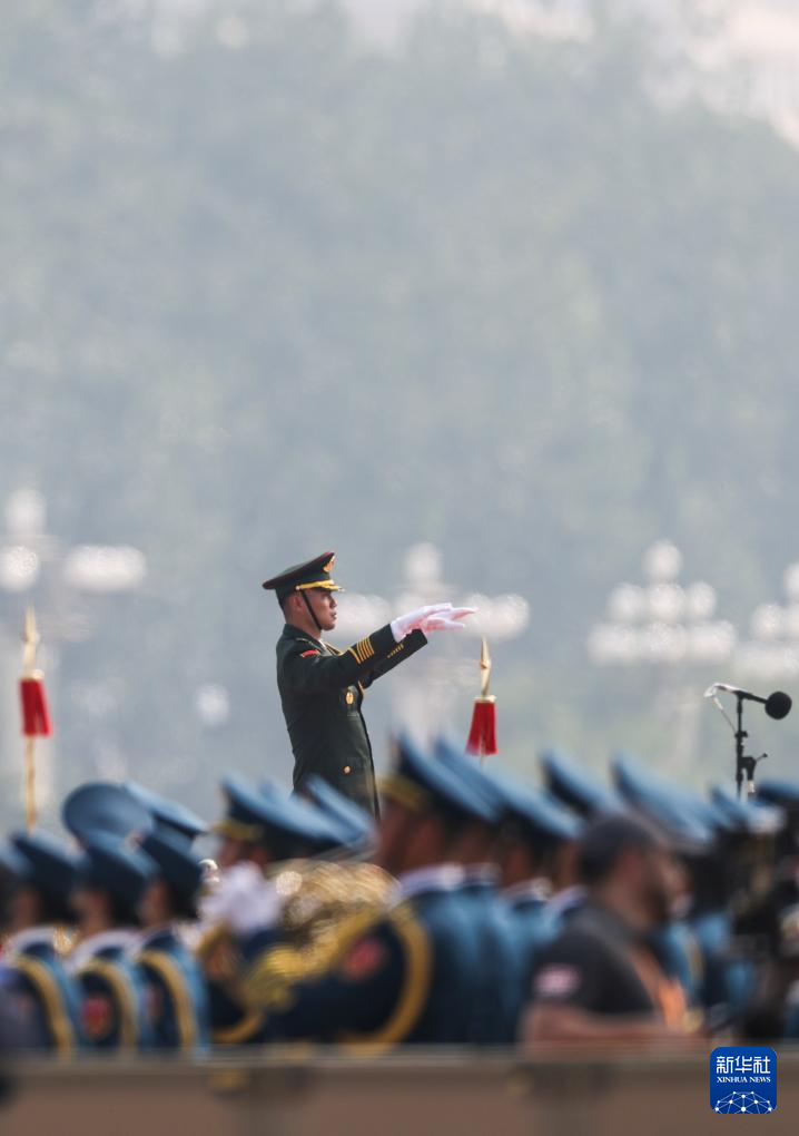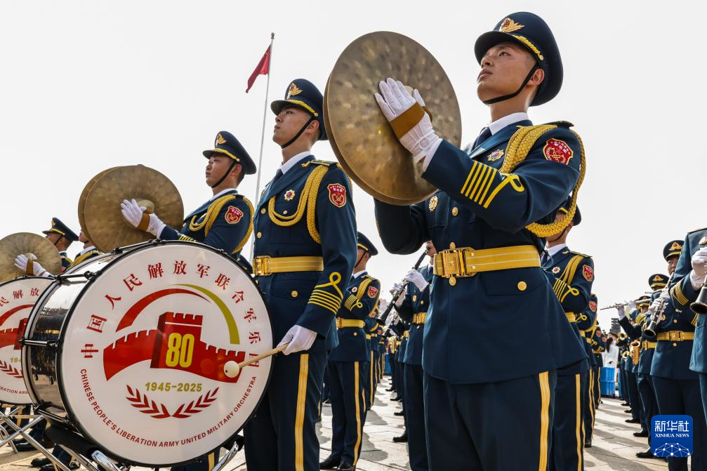 9月3日,纪念中国人民抗日战争暨世界反法西斯战争胜利80周年大会在北京隆重举行。这是中国人民解放军联合军乐团在演奏。