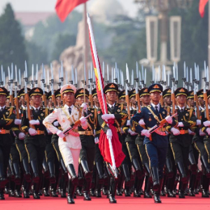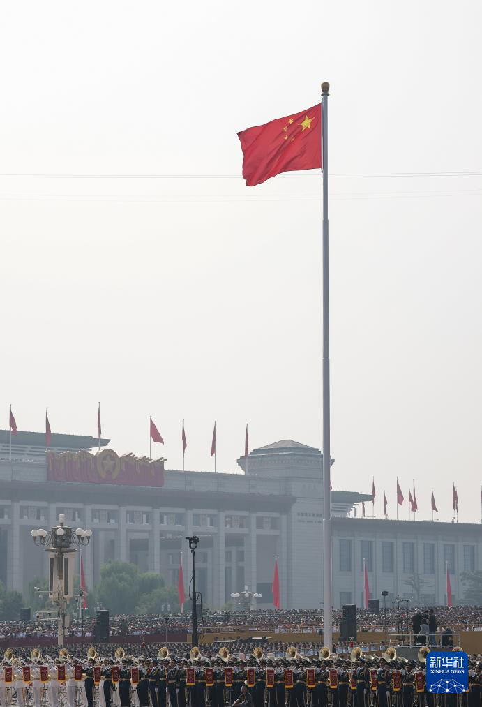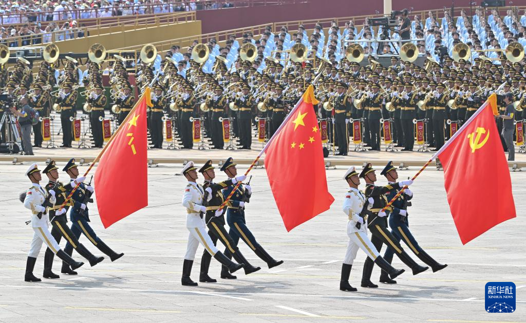9月3日,纪念中国人民抗日战争暨世界反法西斯战争胜利80周年大会在北京隆重举行。这是国旗护卫队在行进中。