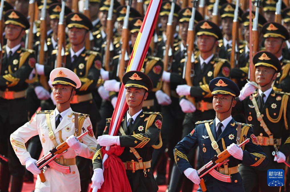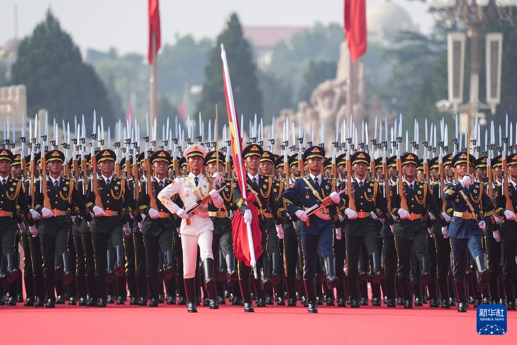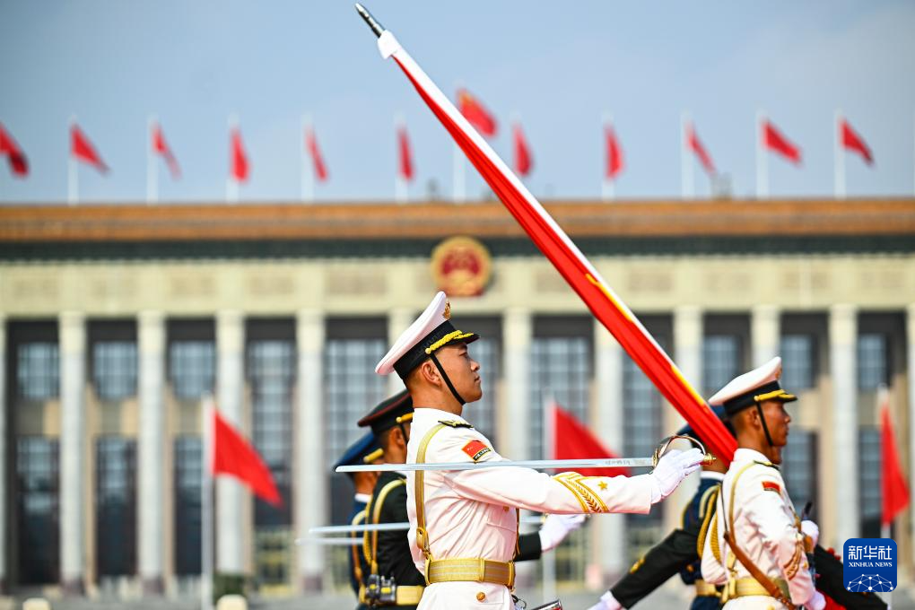 9月3日,纪念中国人民抗日战争暨世界反法西斯战争胜利80周年大会在北京隆重举行。这是国旗护卫队列队。