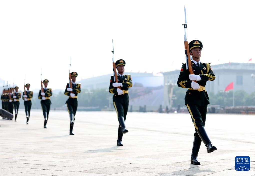 9月3日,纪念中国人民抗日战争暨世界反法西斯战争胜利80周年大会在北京隆重举行。这是国旗护卫队在天安门广场上列队。