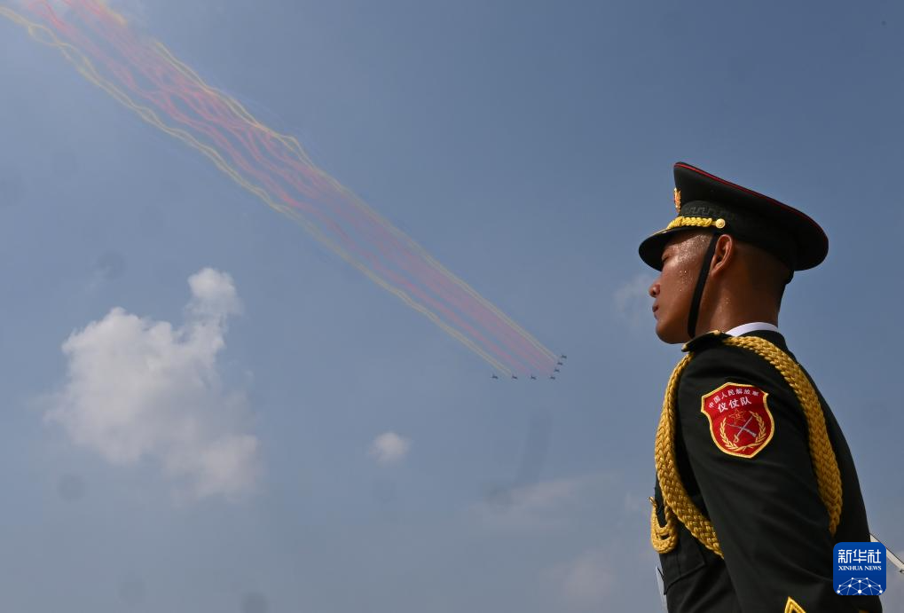 9月3日,纪念中国人民抗日战争暨世界反法西斯战争胜利80周年大会在北京隆重举行。这是空中梯队接受检阅。