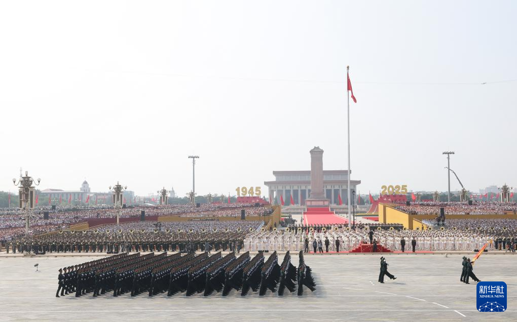 9月3日,纪念中国人民抗日战争暨世界反法西斯战争胜利80周年大会在北京隆重举行。这是仪仗方队接受检阅。