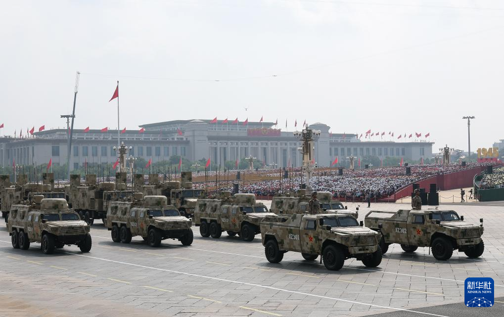 9月3日,纪念中国人民抗日战争暨世界反法西斯战争胜利80周年大会在北京隆重举行。这是信息支援方队接受检阅。