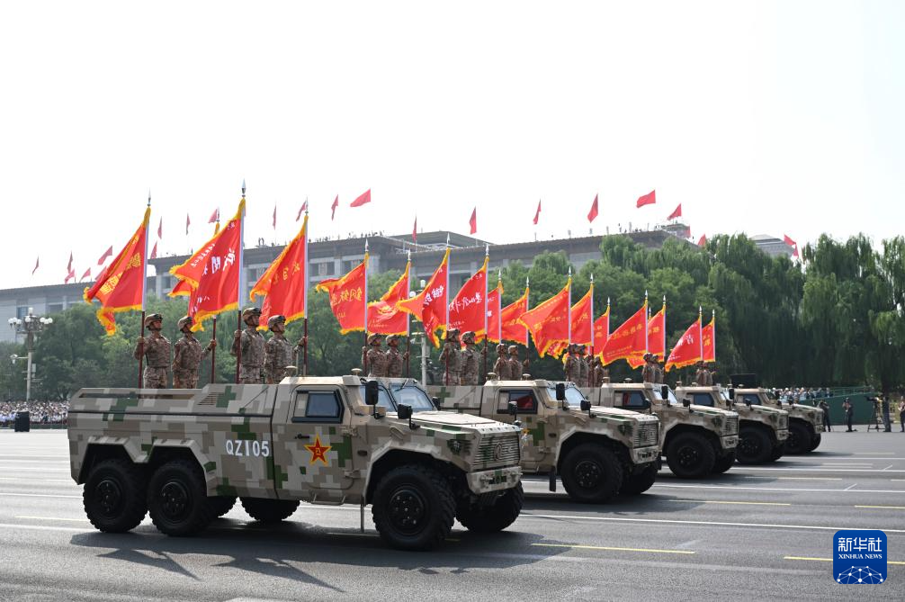 9月3日,纪念中国人民抗日战争暨世界反法西斯战争胜利80周年大会在北京隆重举行。这是战旗方队接受检阅。