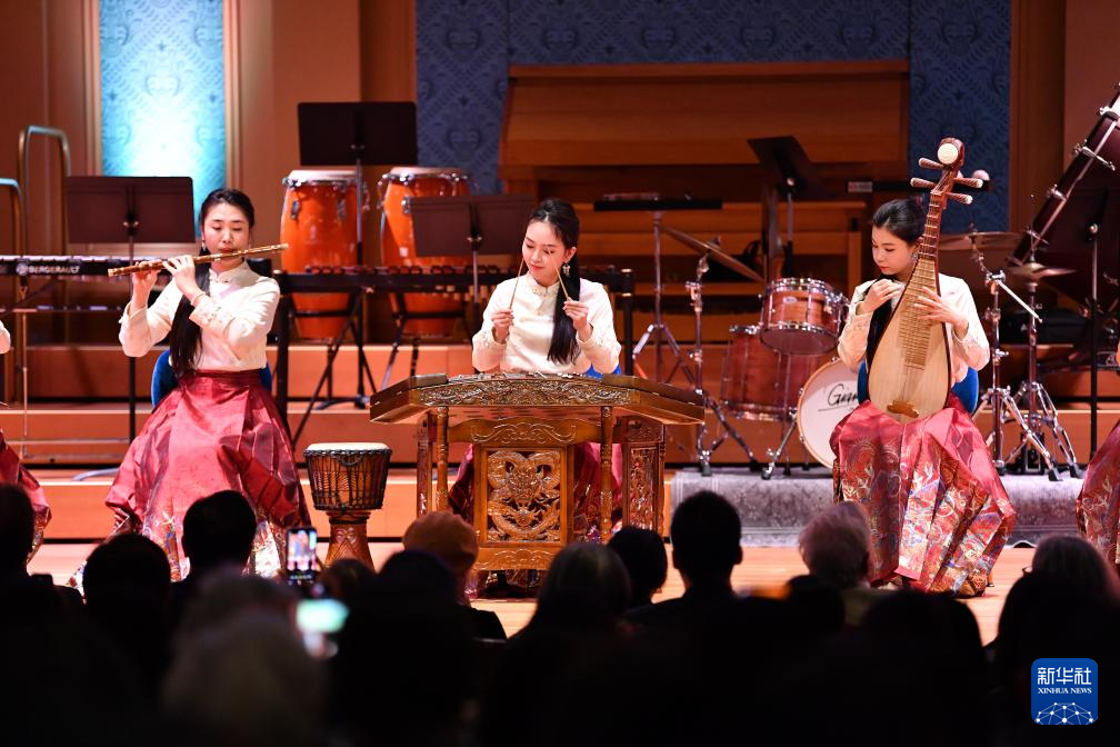 9月23日,在瑞士日内瓦,表演者在2025年“天涯共此时——中秋节”文艺晚会上演奏音乐。