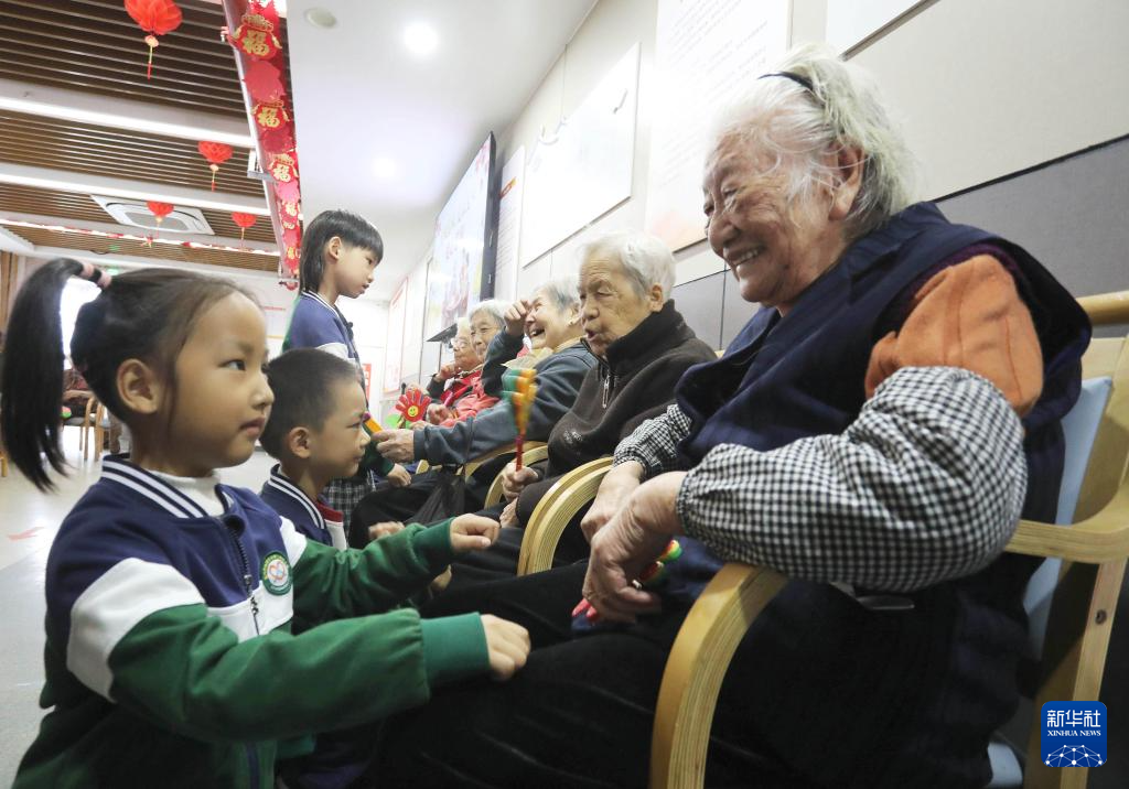 10月29日,江苏省苏州市姑苏区彩香二村幼儿园的小朋友来到彩香老年公寓看望老人。
