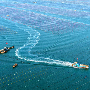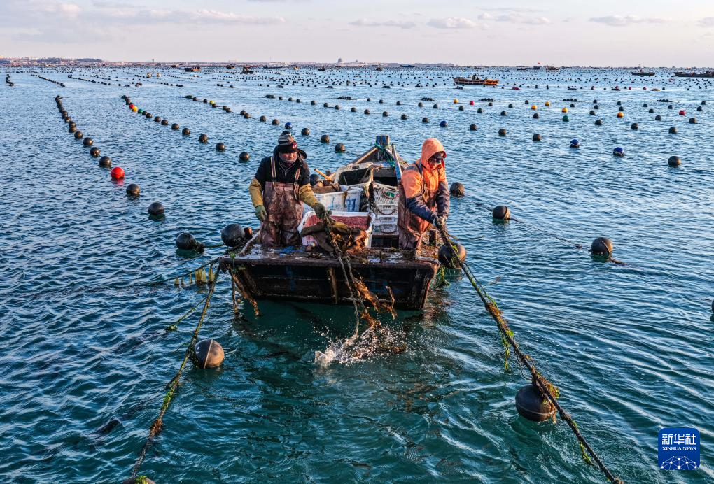 眼下,山东省荣成市海带播苗作业全面展开,养殖工人们抓紧时间进行夹苗、播苗等作业。