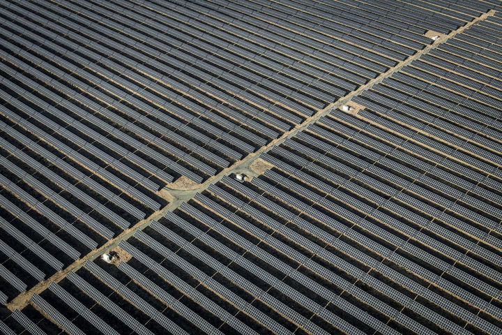 2023年12月7日拍攝的遼寧撫順礦業集團有限責任公司西舍場300MW光伏發電項目現場(無人機照片)。新華社記者 潘昱龍 攝