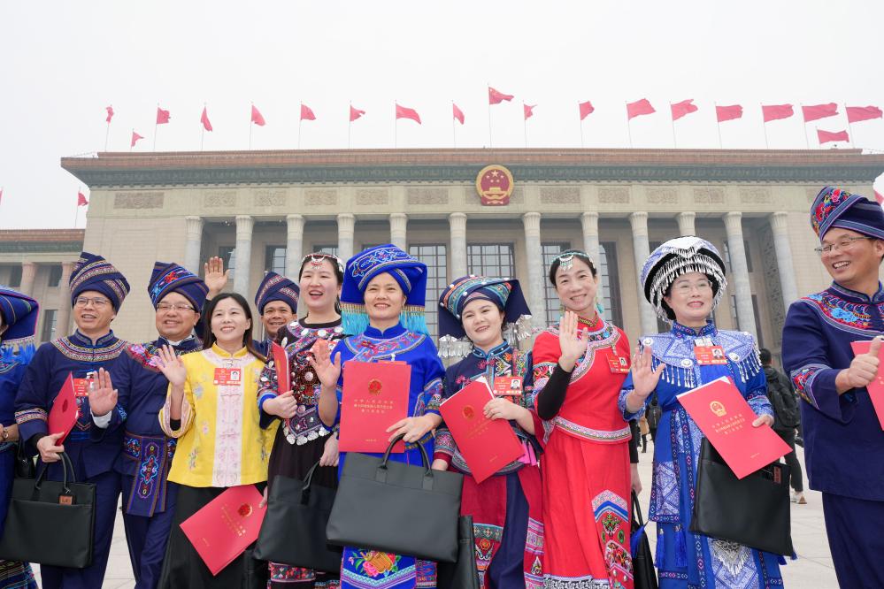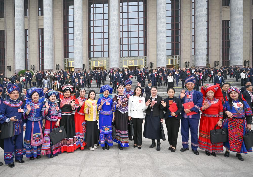 ↑3月11日,十四届全国人大三次会议在北京人民大会堂举行闭幕会。这是闭幕会后,代表们在人民大会堂外合影。