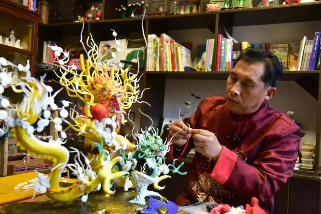 面塑,也叫面花、面人,是中国古老的民间艺术之一。陈氏面塑源于清道光年间,2019年被列入郑州市非物质文化遗产名录。今年48岁的陈道勇,是陈氏面塑第五代传承人。