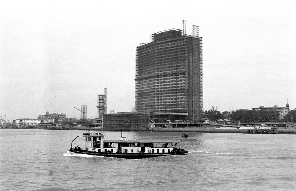 主楼工程已经竣工,正进行全面装修中的广州白天鹅宾馆。这座宾馆是我国引进外资建设的旅游饭店之一。(1982年4月23日发)