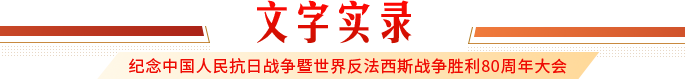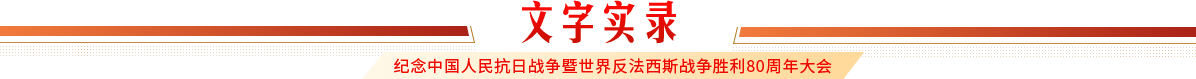 今天,我們隆重集會(huì),紀(jì)念中國(guó)人民抗日戰(zhàn)爭(zhēng)暨世界反法西斯戰(zhàn)爭(zhēng)勝利80周年,共同銘記歷史、緬懷先烈、珍愛(ài)和平、開(kāi)創(chuàng)未來(lái)。[ 2025-09-03 09:09:50 ]