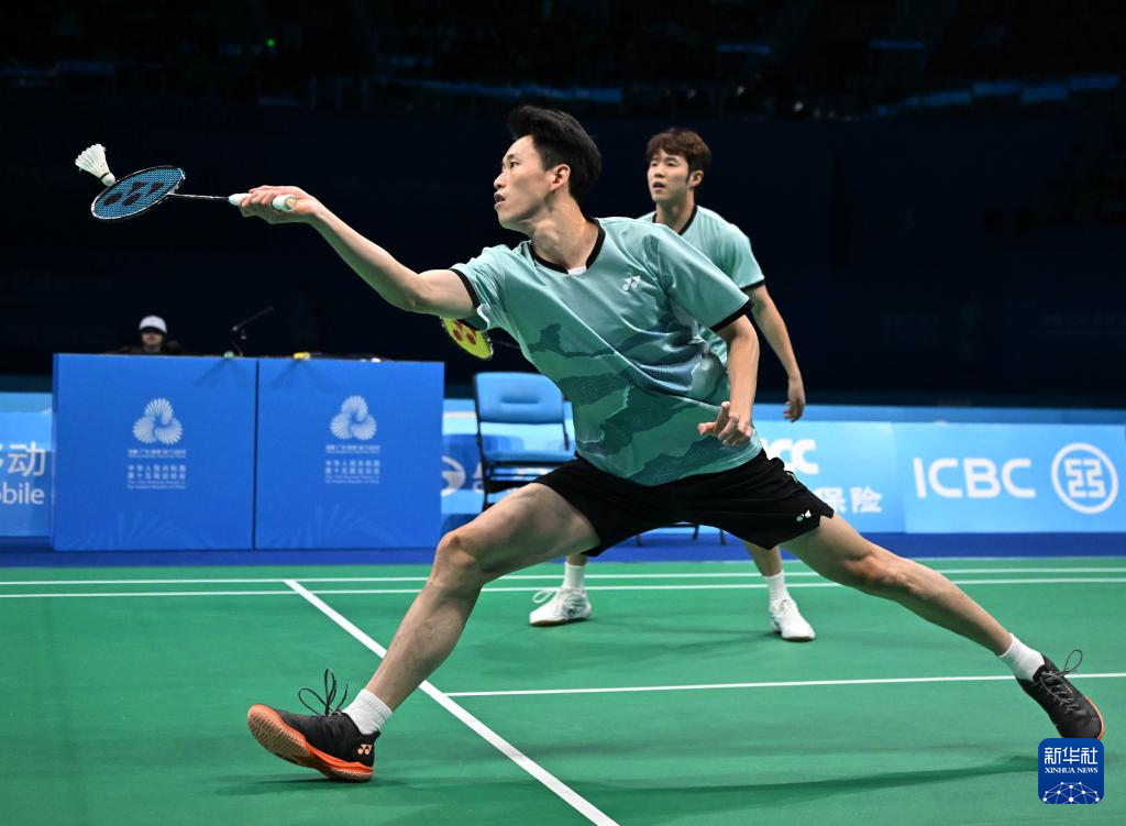 11月19日,福建队组合欧烜屹(右)/何济霆在比赛中。