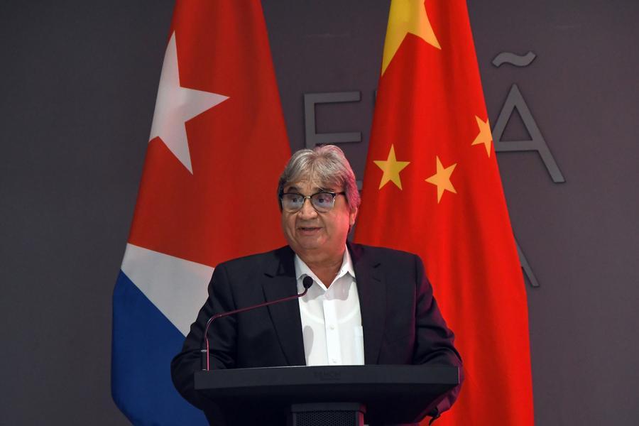 11月12日,在古巴首都哈瓦那,中国驻古巴大使华昕在“红厅论坛·哈瓦那研讨会”上致辞。 新华社发(华金·埃尔南德斯摄)