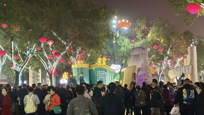 夜幕降臨,燈火中的唐式建筑為西安這座城市添上了一抹繁華?;⒒ㄊ伺畩y的游客在拍照打卡,身著唐代服飾的店家在沉浸叫賣,大唐不夜城步行街內熱鬧非凡。街中的“盛唐密盒”舞臺上,NPC正在上演脫口秀,吸引了大量游客駐足觀看。